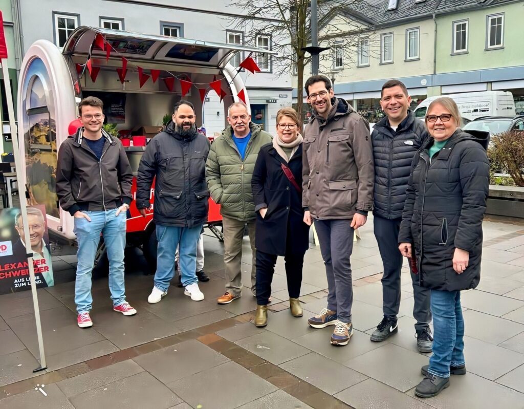 Christian Zacarias eröffnete die Versammlung und begrüßte die Mitglieder im Namen des Vorstands. Ein Höhepunkt des Abends war die Anwesenheit des einstigen Ministerpräsidenten Rudolf Scharping, der die Ehrung langjähriger Mitglieder vornahm. Für 60 Jahre Mitgliedschaft in der SPD wurde Lothar Labonte geehrt, Wolfgang Fischer ist seit 50 Jahren Sozialdemokrat, Annette Wick und Birgit Zimmermann folgen mit 40 Jahren. Seit 25 Jahren sind Eva Milbrodt, Jörg Milbrodt, Jens Nachtigall und Rebecca Lefèvre Mitglied bei der SPD. In seiner Ansprache würdigte Rudolf Scharping den großen Einsatz der Geehrten für die sozialdemokratische Sache und ging auf aktuelle Entwicklungen im Weltgeschehen ein. Das Foto zeigt (hinten von links) Jens Nachtigall, den Vorsitzenden Christian Zacarias und den einstigen Ministerpräsidenten Rudolf Scharping. In der vorderen Reihe stehen (von links) Birgit Zimmermann, Annette Wick, Lothar Labonte und Eva Milbrodt.